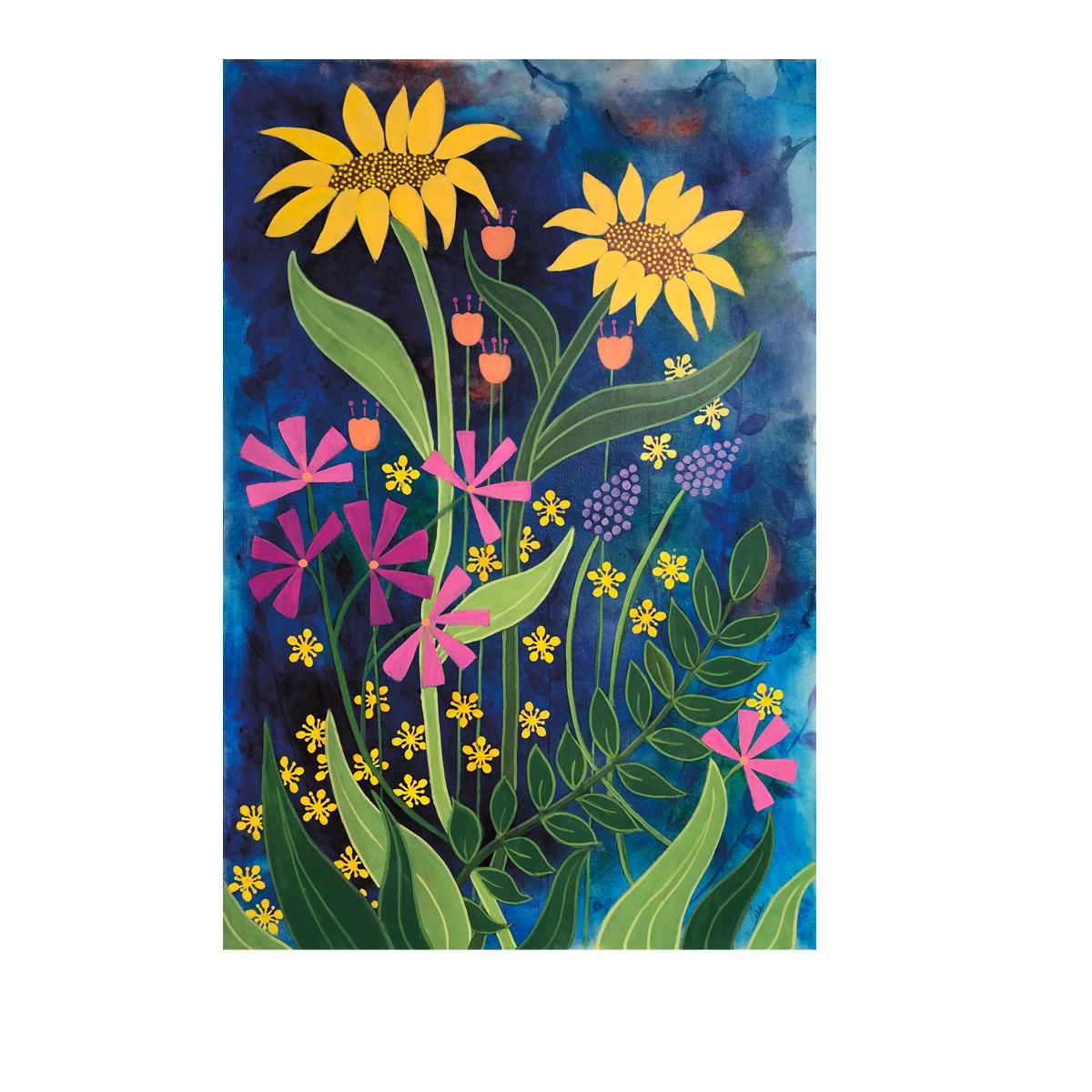 I knew I wanted to be an artist before I knew what an artist was. As a child, I was spellbound by the illustrations in my storybooks and knew I wanted to make “beautiful pictures” like the ones in my books. Life, however, had its own plans. I spent several years working as a rehabilitation counselor, helping others find their footing, all while hoping that at some point, I would find my own footing. Eventually, I took the leap, left my job, and returned to college to earn a Bachelor of Fine Arts degree. From there, I worked as a graphic designer, taught at a local university, hosted art classes in my home studio, and led workshops through our city’s tourism department. I loved teaching, but over time, I felt the need to return to what had inspired me all along—the joy of creating. That’s how the Sunwoven Art collection was born. Each piece is modest in size and price, with the goal of bringing original art into people’s everyday lives without making it feel out of reach. I also enjoy working on a larger scale, and more recently, I've been exploring abstract and intutive approaches to art. Most days, you’ll find me working in my studio, music playing (anything from country to opera), with two cats watching over me—completely unimpressed by my music or my progress. But still, they stay, as if on some level they want to be a part of the creative process.