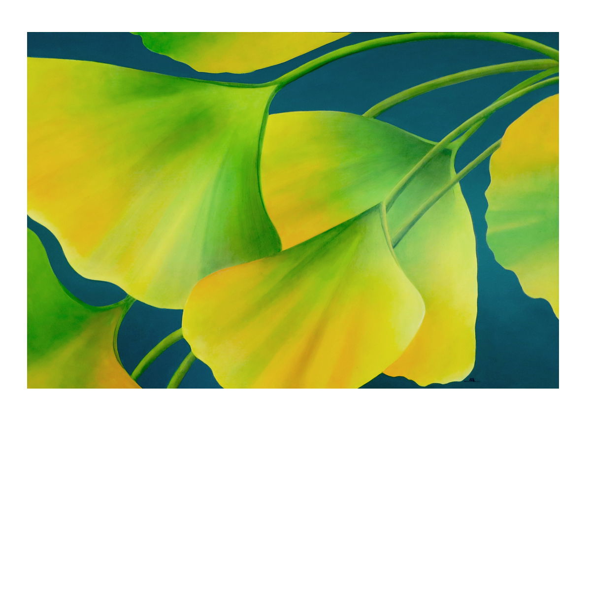Medium: acrylic paint and India ink on ginkgo leaf • Size: 5.5" x 5.5" x 1.75" • SOLD